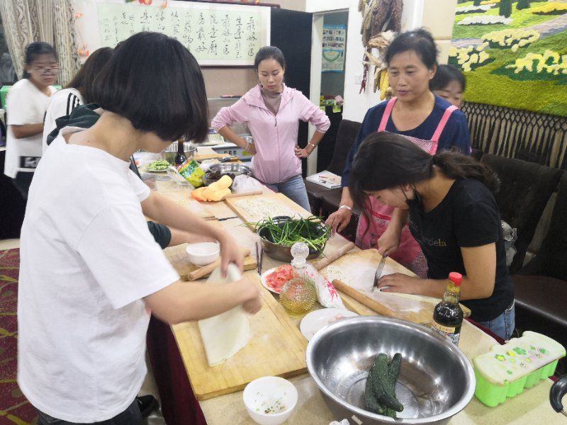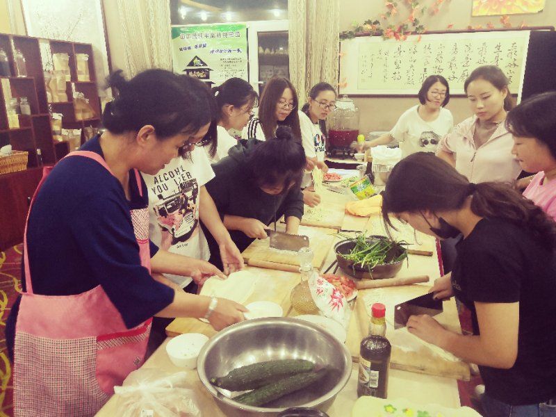 在中医营养学的课上,刘老师教同学们和面需要注意面的软硬程度,不同需求的人群需 要吃不同的蔬菜面——比如用芹菜汁活的面适合高血压人群,水果汁因为维生素比较丰富适 合儿童,韭菜汁则适合减肥人群。在蔬菜面的制作过程中,刘老师教给同学们一些家庭常用的切丝切丁方法,炒菜的一些注意事项以及淀粉浆使汤汁粘稠的用处。